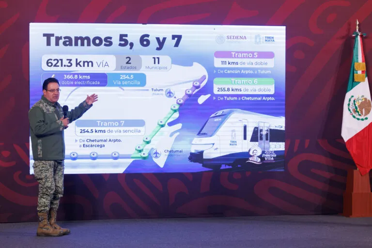 El presidente Andrés Manuel López Obrador encabezó el informe de avances de los tramos 5 norte y sur, 6 y 7 del Tren Maya, los