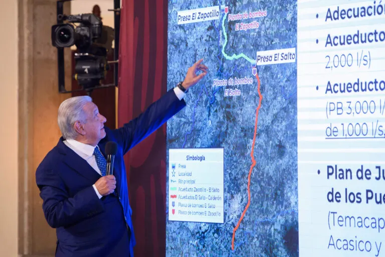 El presidente Andrés Manuel López Obrador afirmó que la consolidación de proyectos hídricos, impulsados por el Gobierno de la Cuarta Transformación en beneficio de la