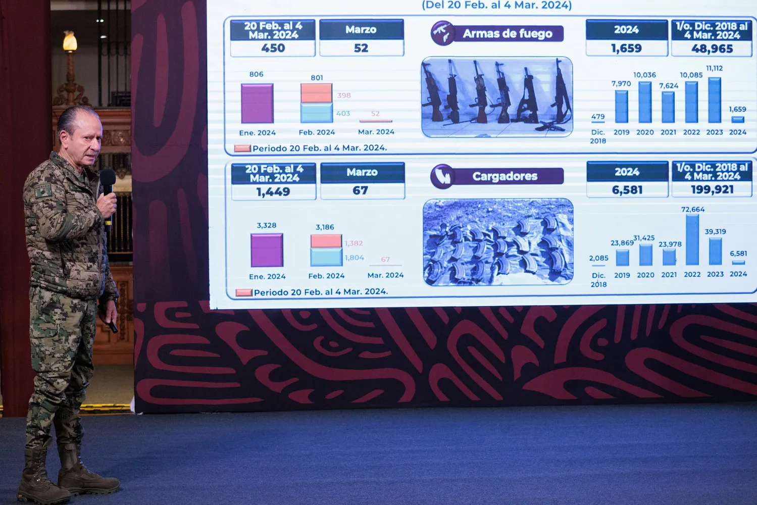 Durante el informe conjunto del 20 de febrero al 4 de marzo, el titular de Marina resaltó la destrucción de 2 mil 445 laboratorios clandestinos de metanfetamina desde diciembre de 2018 a la fecha, lo que ha evitado que más de 8 mil 290.8 toneladas de esa droga lleguen a las calles. Estas acciones afectaron el financiamiento de la delincuencia organizada por más de 2 billones de pesos.