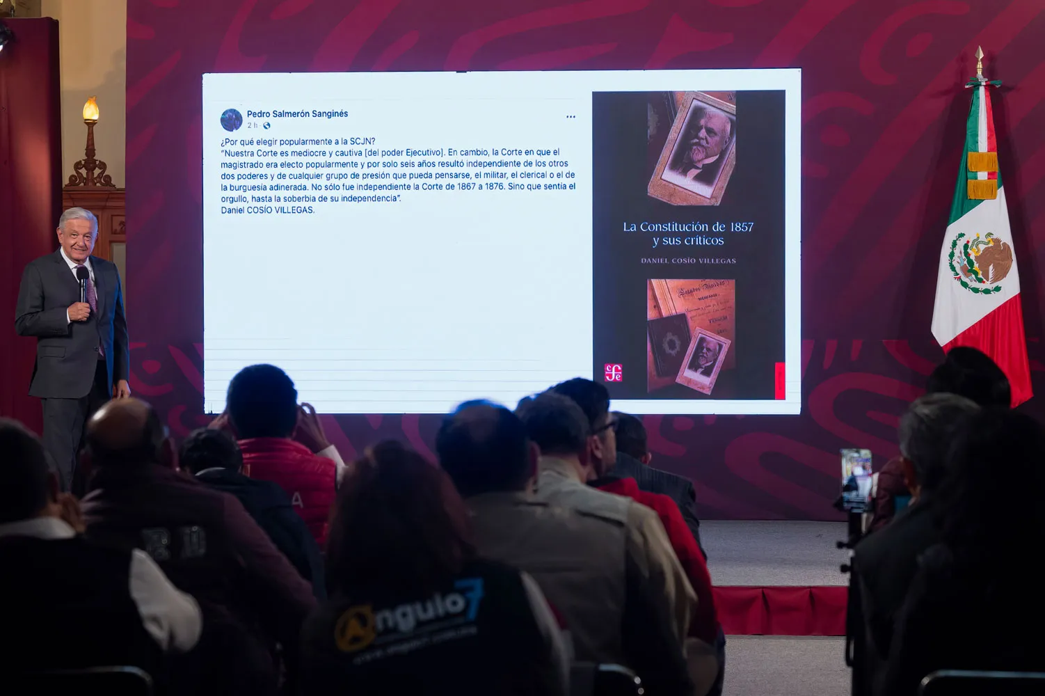 “El pueblo tiene que participar en estas decisiones. La política es un asunto de todos. (…) Que no los elija o nombre la élite del poder, sino que sea el pueblo. Además, ya fue así en la época en la que gobernó el presidente Juárez y el presidente Lerdo, en lo que se conoce como el periodo de la República Restaurada, de 1867 a 1876, diez años. (…) Fue el tiempo en el que más independencia hubo en los poderes”, remarcó.