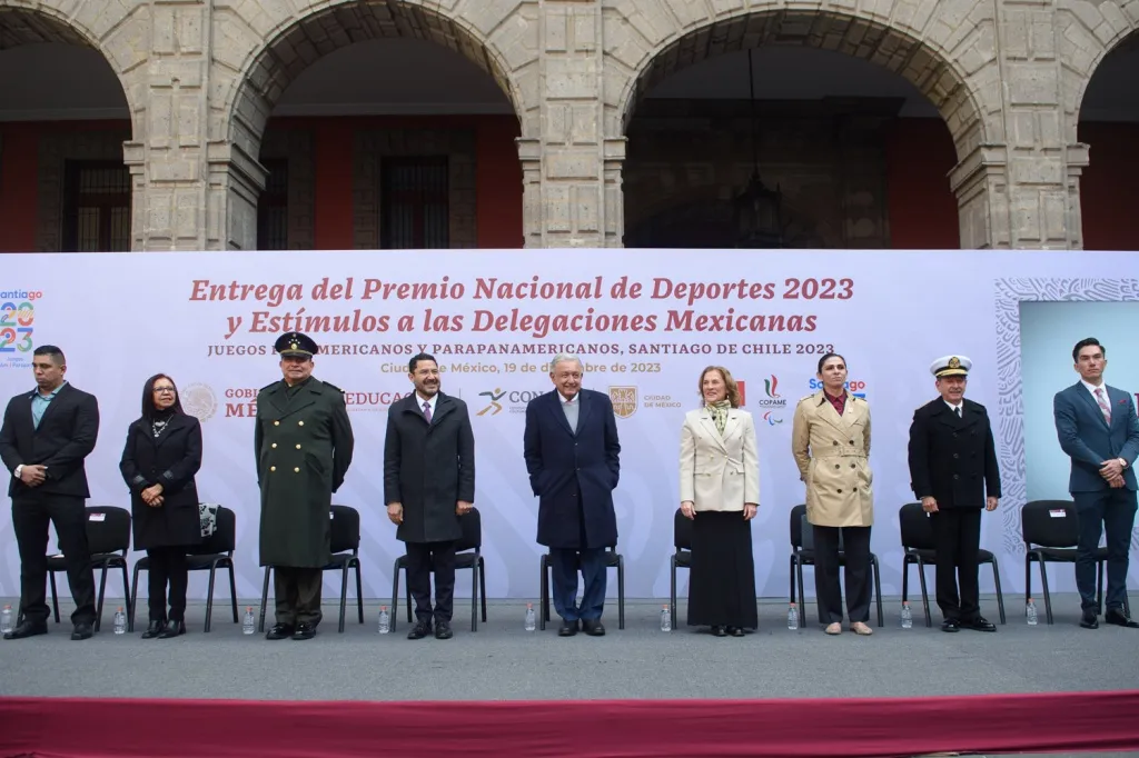 El presidente Andrés Manuel López Obrador se reunió en Palacio Nacional con las y los deportistas participantes en los Juegos Parapanamericanos y Panamericanos 2023, así como sus entrenadores, a quienes entregó estímulos económicos.