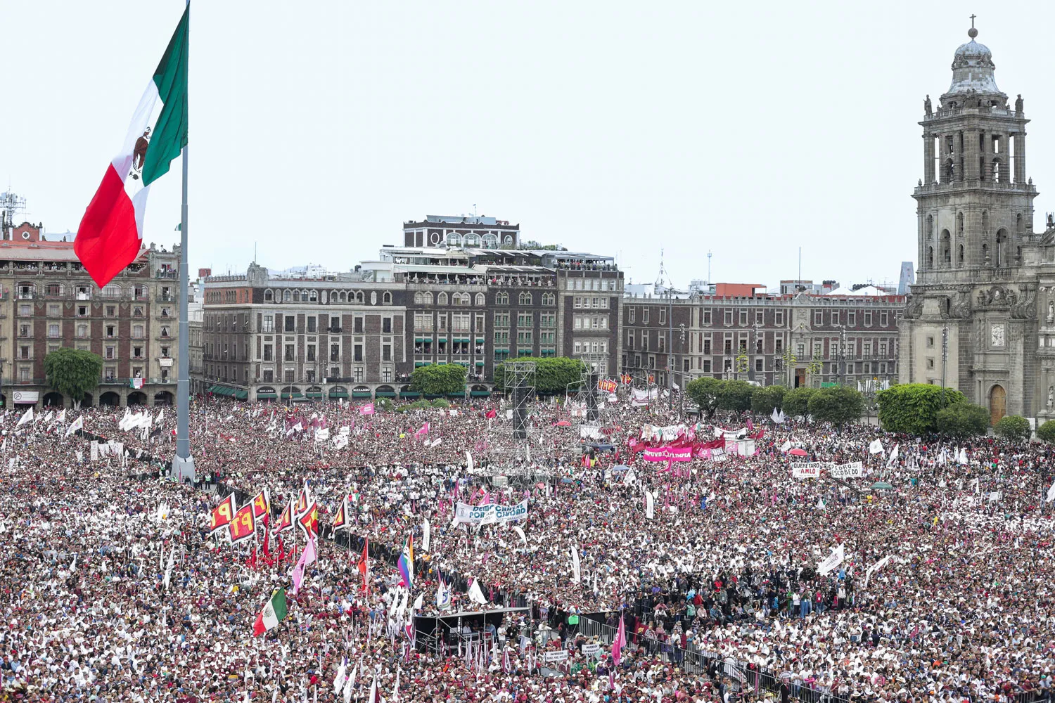 Acompañado de gobernadoras, gobernadores, integrantes del Gabinete Legal y miles de personas reunidas en la Plaza de la Constitución para celebrar que el 1 de julio de 2018 ganó la elección presidencial —con el 53 por ciento de los votos de la ciudadanía—, el presidente López Obrador destacó que la justicia y tranquilidad social en México son resultado de no permitir la corrupción y hacer un gobierno austero.