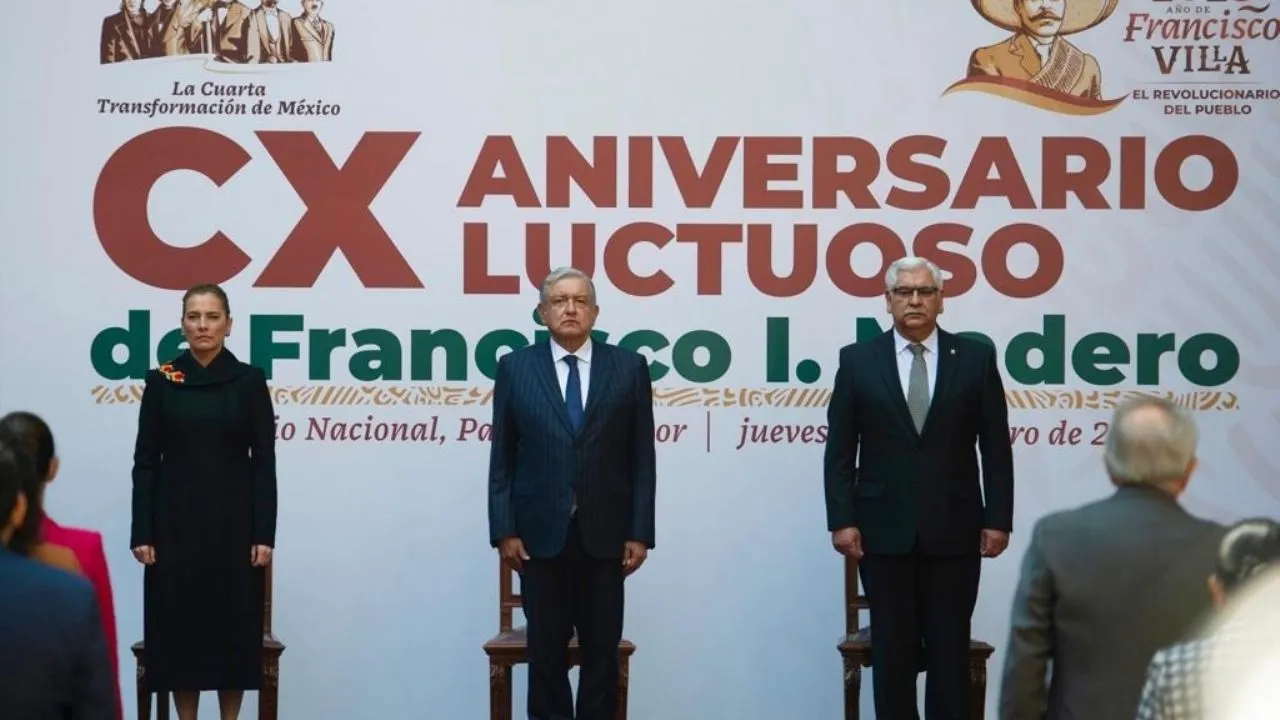 El presidente Andrés Manuel López Obrador encabezó la ceremonia por el 110 Aniversario Luctuoso de Francisco I. Madero.