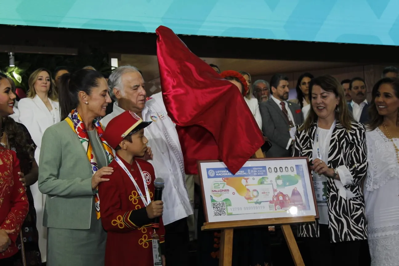 Así mismo, Torruco Marqués, Sheinbaum Pardo, y Margarita González Arabia, directora general de la Lotería Nacional, llevaron a cabo la develación del billete de la Lotería Nacional, conmemorativo de la 47 edición del Tianguis Turístico.
