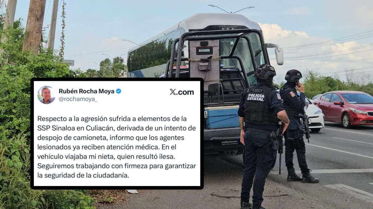 Dos elementos de la Dirección de Servicios de Protección de la Secretaría de Seguridad Pública (SSP) del Estado de Sinaloa, que custodiaban a la nieta del gobernador Rubén Rocha Moya, resultaron heridos, uno de gravedad.