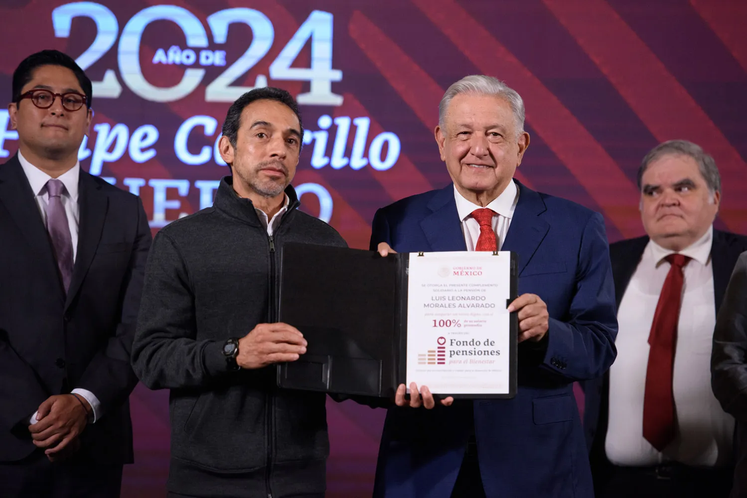 El presidente Andrés Manuel López Obrador otorgó a trabajadoras y trabajadores incorporados al Instituto Mexicano del Seguro Social (IMSS) y al Instituto de Seguridad y Servicios Sociales de los Trabajadores del Estado (ISSSTE) las primeras pensiones del 100 por ciento del salario que tenían al jubilarse. Este ingreso total es posible gracias al complemento solidario que aporta el Gobierno de México.