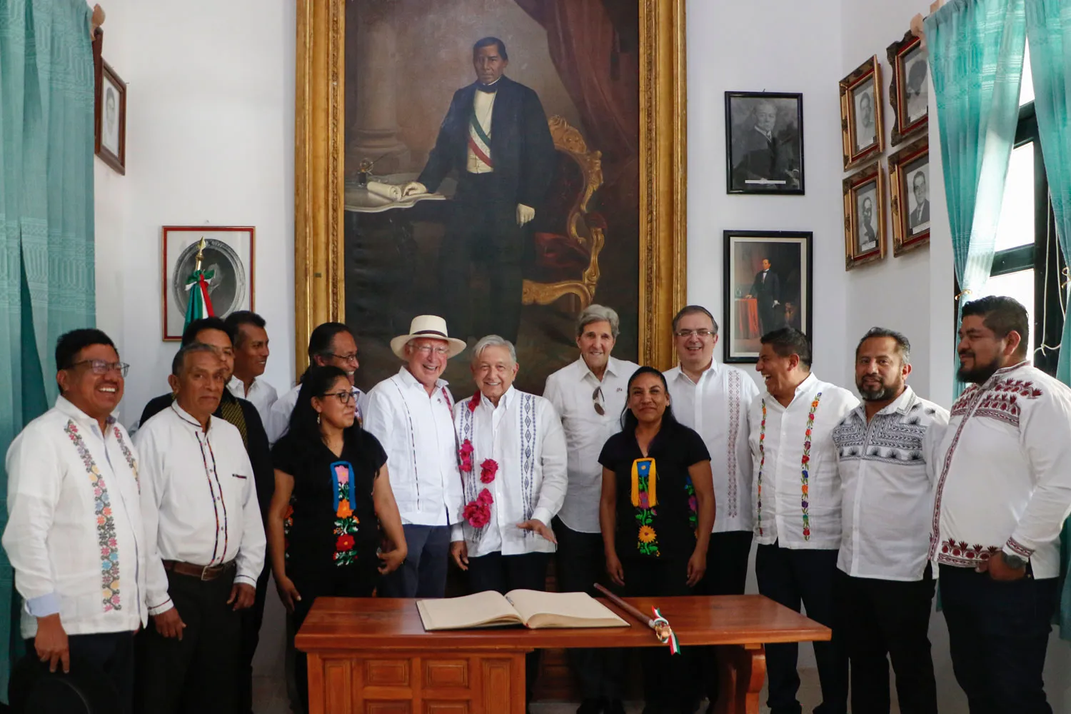 Por esa razón, afirmó, hoy fue invitado a la ceremonia el enviado presidencial especial de Estados Unidos para el Clima, John Kerry, a quien aseguró que se dará continuidad a la cooperación y amistad entre México y Estados Unidos, como cuando el presidente Abraham Lincoln apoyó la causa de Juárez, desconoció a Maximiliano y no aceptó la invasión extranjera de Napoleón III a México.