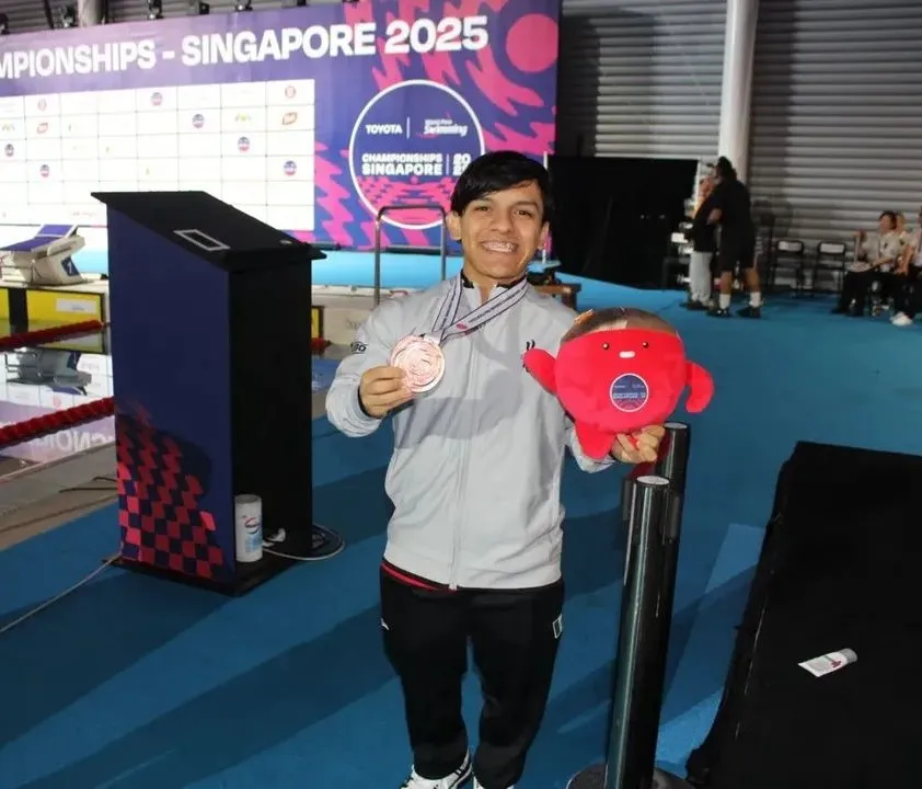 “Tenía la expectativa de ganar una medalla en mi prueba fuerte, el 400 metros libre (prueba en la que ganó su presea de París 2024 y quedó en cuarto lugar en Singapur) y en el 200 combinado, para el que me estaba preparando muy fuertemente, pero la medalla que sí me sorprendió fue la de los 100 pecho, donde me coloqué entre los tres mejores del mundo, con un tiempo de 1:20 segundos”, destacó.