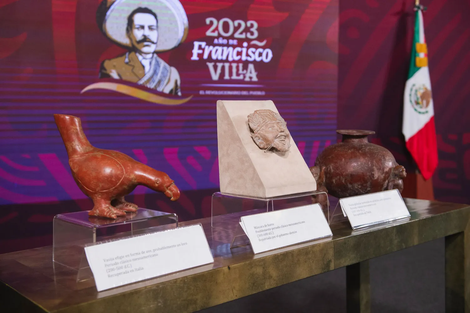 La secretaria de Cultura, Alejandra Frausto Guerrero, detalló que parte de las 43 piezas son resultado del decomiso realizado por el Cuerpo de Carabinieri de Tutela de Protección del Patrimonio Cultural de Italia e incluso unas fueron adquiridas por particulares.