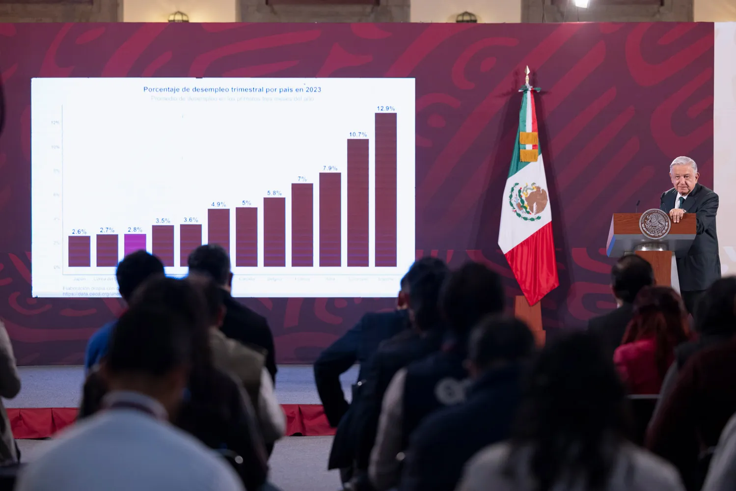La tasa de desempleo en el primer trimestre del año se encuentra en el nivel más bajo desde el inicio de la administración: 2.8 por ciento. México tiene mejores condiciones en este rubro en comparación con países como Estados Unidos, Australia, Austria, Canadá, Bélgica, Francia, Italia, Colombia y España.