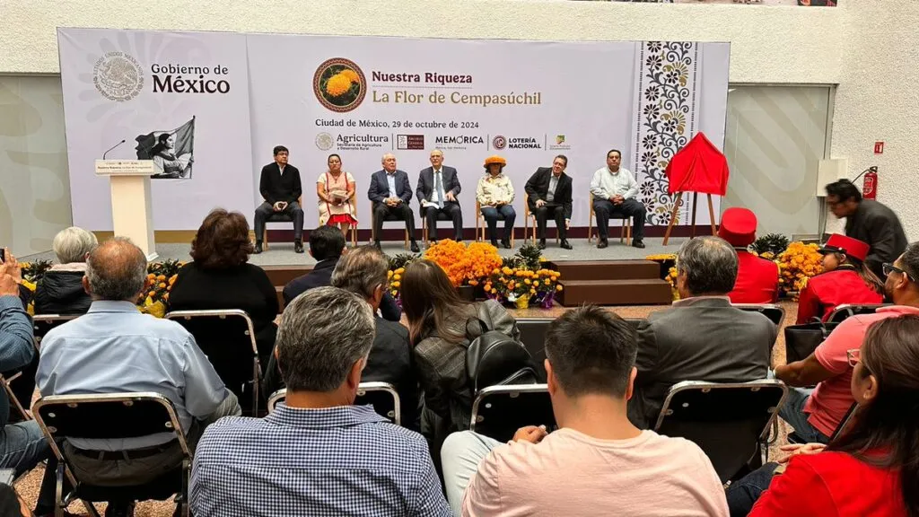 El secretario de Agricultura y Desarrollo Rural, Julio Berdegué Sacristán, reconoció el trabajo de las y los productores de flor de cempasúchil con la develación de un billete de la Lotería Nacional, que refleja la importancia histórica, cultural y productiva de nuestro país.