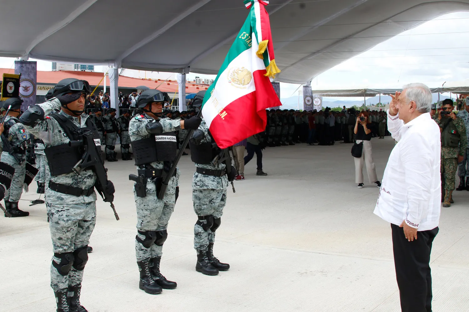Acompañado de la futura comandanta suprema de las Fuerzas Armadas, recordó el lema de la institución que la siguiente semana cumplirá cinco años de garantizar la seguridad pública en México.