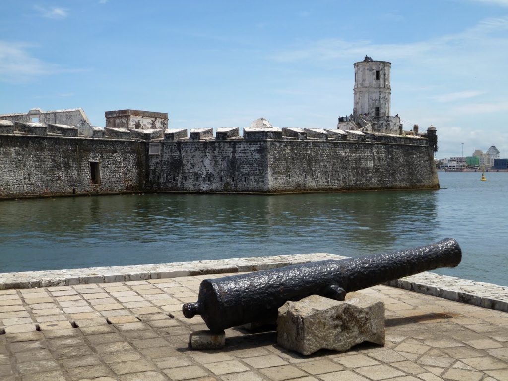 Hacia 1552 existía en el islote una pequeña torre no mayor que la altura de un hombre. Para fines del siglo XVI, la Torre Vieja formó complemento de un muro de argollas y un baluarte en su extremo que protegía a la flota real naviera de los vientos impetuosos del norte.