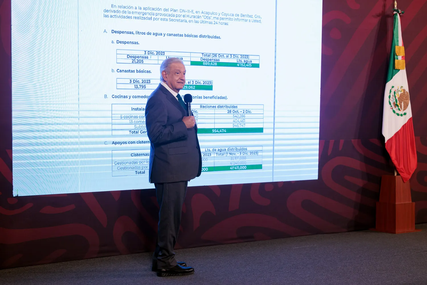 En conferencia de prensa matutina, el mandatario presentó una nota de la secretaria de Bienestar, Ariadna Montiel Reyes, quien le reportó la distribución de 132 mil 849 apoyos por concepto de limpieza.