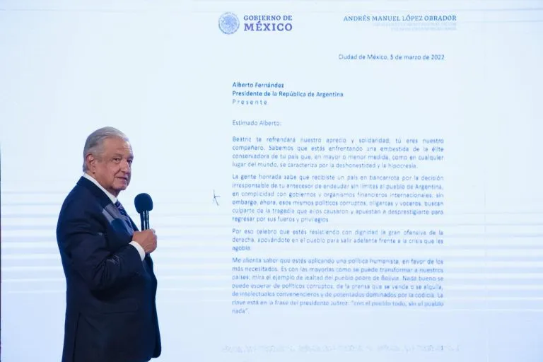 México 11 marzo._ El presidente Andrés Manuel López Obrador dio a conocer la carta que envió a su homólogo argentino, Alberto Ángel Fernández, para expresar