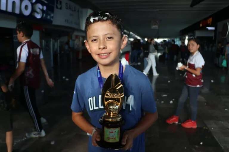 El presidente Andrés Manuel López Obrador felicitó a Roy Fernando Monroy, de nueve años de edad, primer lugar en su categoría en el campeonato mundial